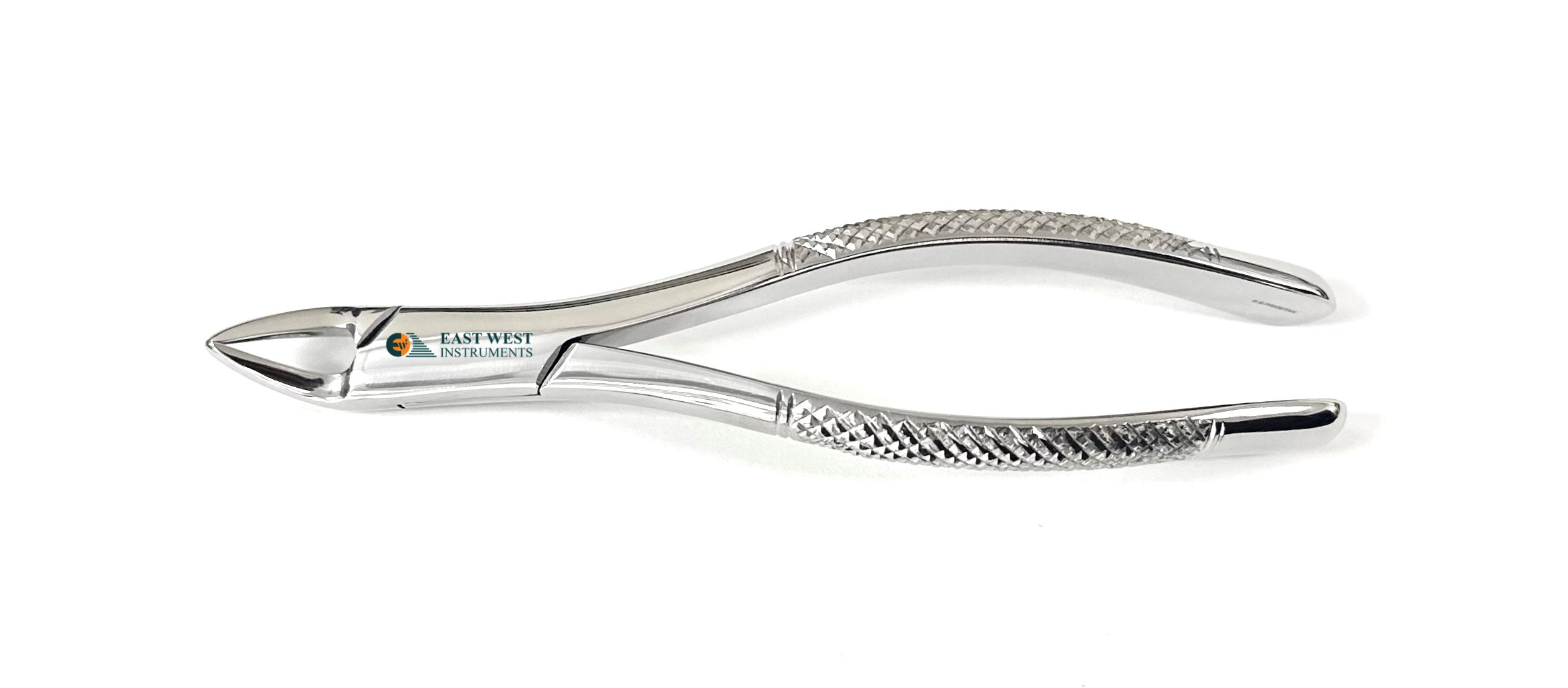 - Serrated Beak: The forceps are equipped with a serrated or textured surface on the beak, which provides a better grip on the smaller and often more delicate primary teeth during the extraction process.